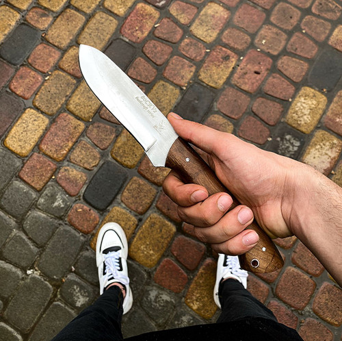 شف ضد زنگ با کیفیت زنجان تیغه استیل طرح سان مای دسته هیدن هشت ضلعی چوب درخت گردو طول کلی۳۲سانتی