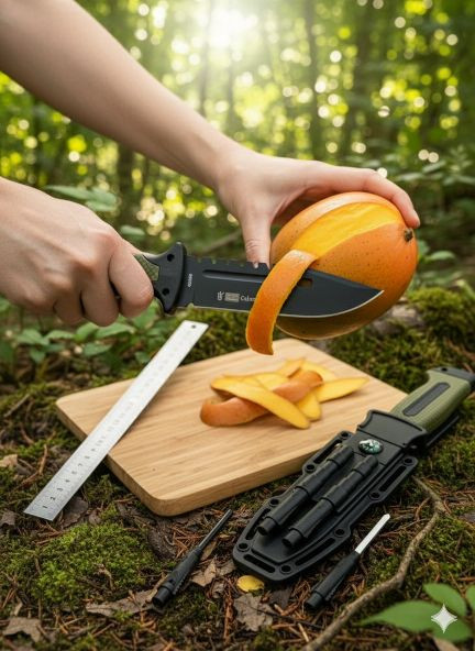 * کارهای روزمره کمپ: برش چوبهای کوچک، آمادهسازی غذا، و بریدن طناب.