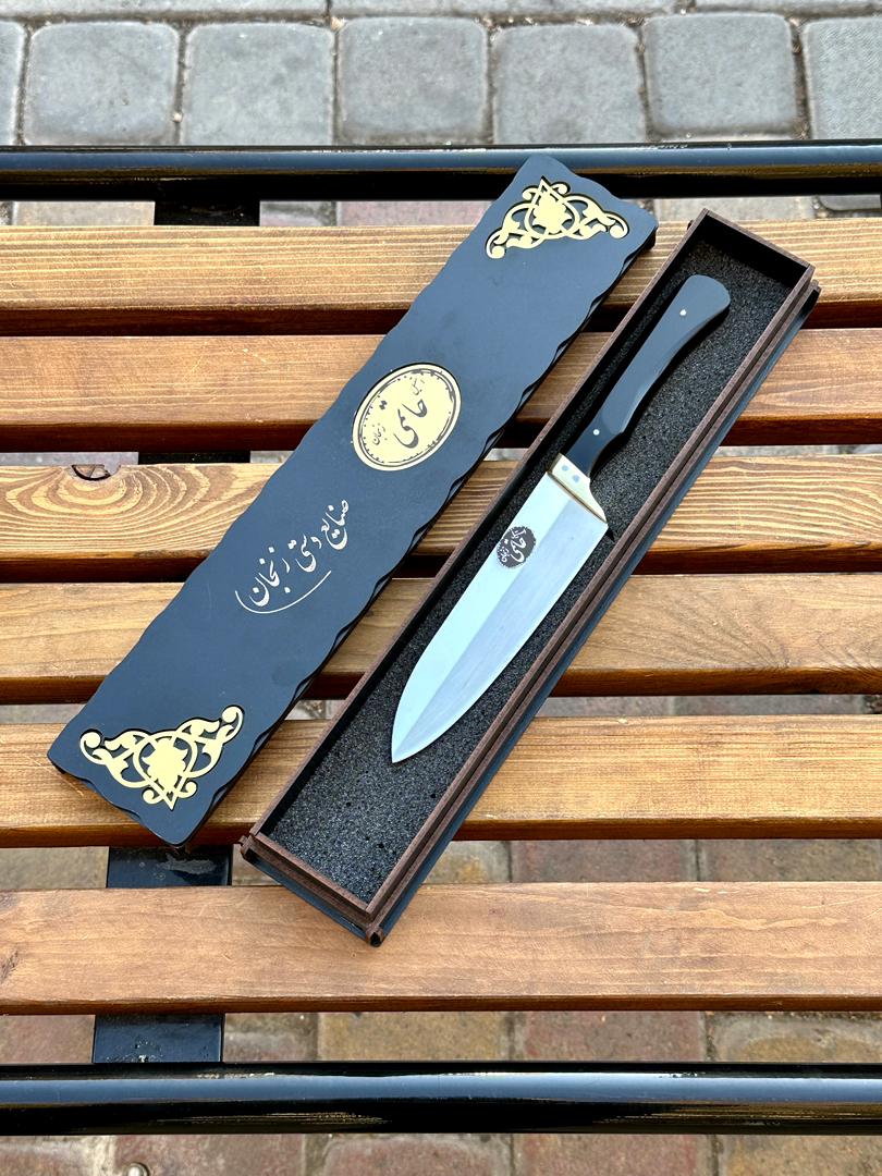 چاقو آشپزخانه حاتمی راسته استیل ضد زنگ دسته فیبر نسوز با جعبه