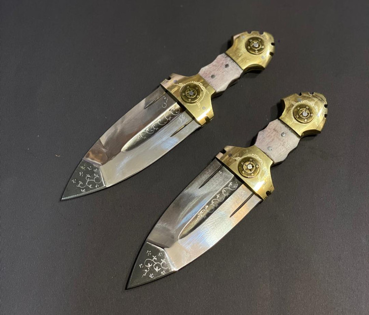 خنجر ۲۰ سانت کلکسیونی استاد شنس دسته استخوان شتر باربند برنجی تیغه فولاد فنر ماشین حکاکی شده