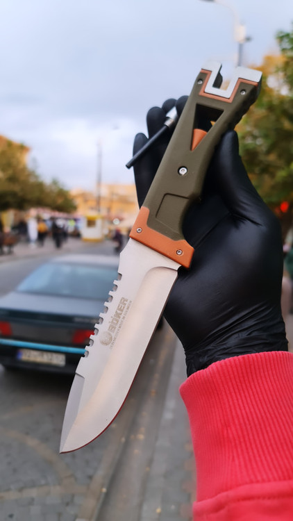 شکاری اورجینال بوکر مخصوص طبیعت گردی دارای چخماق انتهایی طول کار ۲۵ سانت تیغه استیل فولاد بسیار قوی