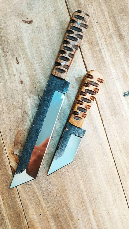 ست شکاری تانتو جنس تیغه فولاد فنر ابدیده جنس دسته چوب نارون