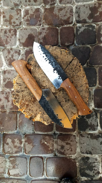 چاقو سلاخی حرفه ای ست بادامی و (طرح) راسته ای طول کار 28 سانت جنس دسته چوب نارون جنس تیغه فولاد فنر