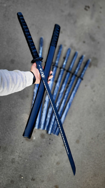 شمشیر کاتانای ۱۰۰ سانت تمام مشکی طراحی اژدها تیغه یک تیکه فولاد فنر آلمانی ضخامت ۴ میل