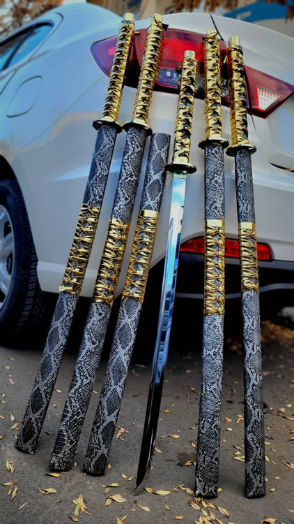 شمشیر کاتانای ۱۰۰ سانت تیغه هفت رنگ پوست ماری تیغه یک تیکه فولاد فنر آلمانی ضخامت ۴ میل