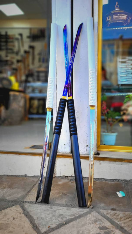 شمشیر کاتانای دو تیغ سفارشی طول کل کار ۱۲۰ سانت تیغه یک تیکه فولاد فنر آلمانی ضخامت ۴ میل