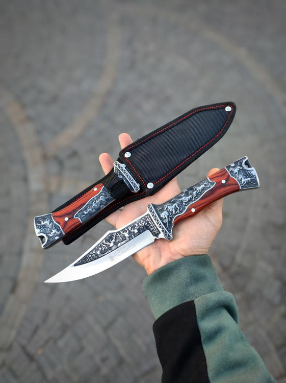 چاقو کارد شکاری کلمبیا اورجینال سوییسی طول کار 28 سانت دارای غلاف برزنتی