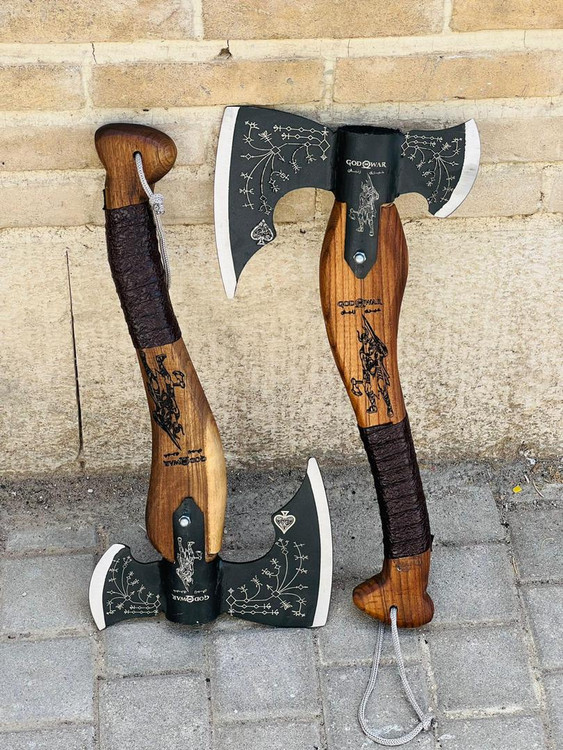 تبر وایکینگی کریتوس زنجان سایز کوچک تبر گاد اف وار مدل GodWar طول کار 50 سانت تیغه بسیار قوی و مقاوم مخصوص کمپ و کوهنوردی