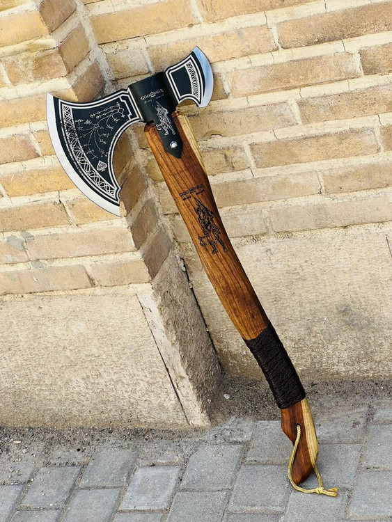 تبر وایکینگی کریتوس زنجان سایز بزرگ تبر گاد اف وار مدل GodWar طول کار 75 سانت تیغه فولادی بسیار قوی و مقاوم مخصوص کمپ و کوهنوردی