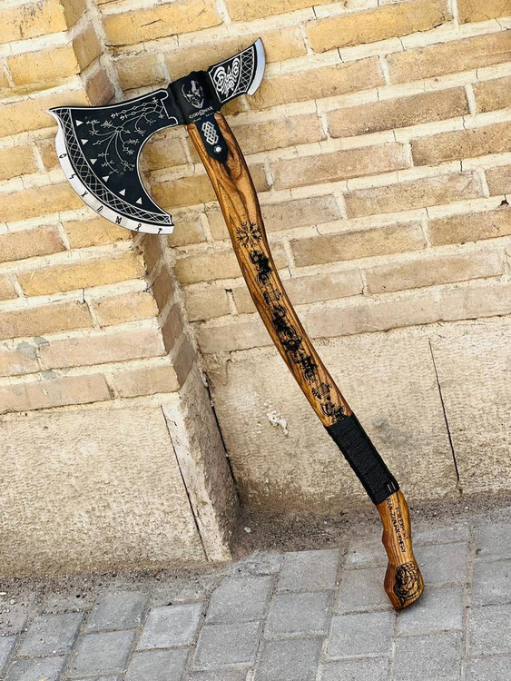 تبر وایکینگی کریتوس زنجان سایز غول تبر گاد اف وار مدل GodWar طول کار 85سانت تیغه فولادی بسیار قوی و مقاوم مخصوص کمپ و کوهنوردی